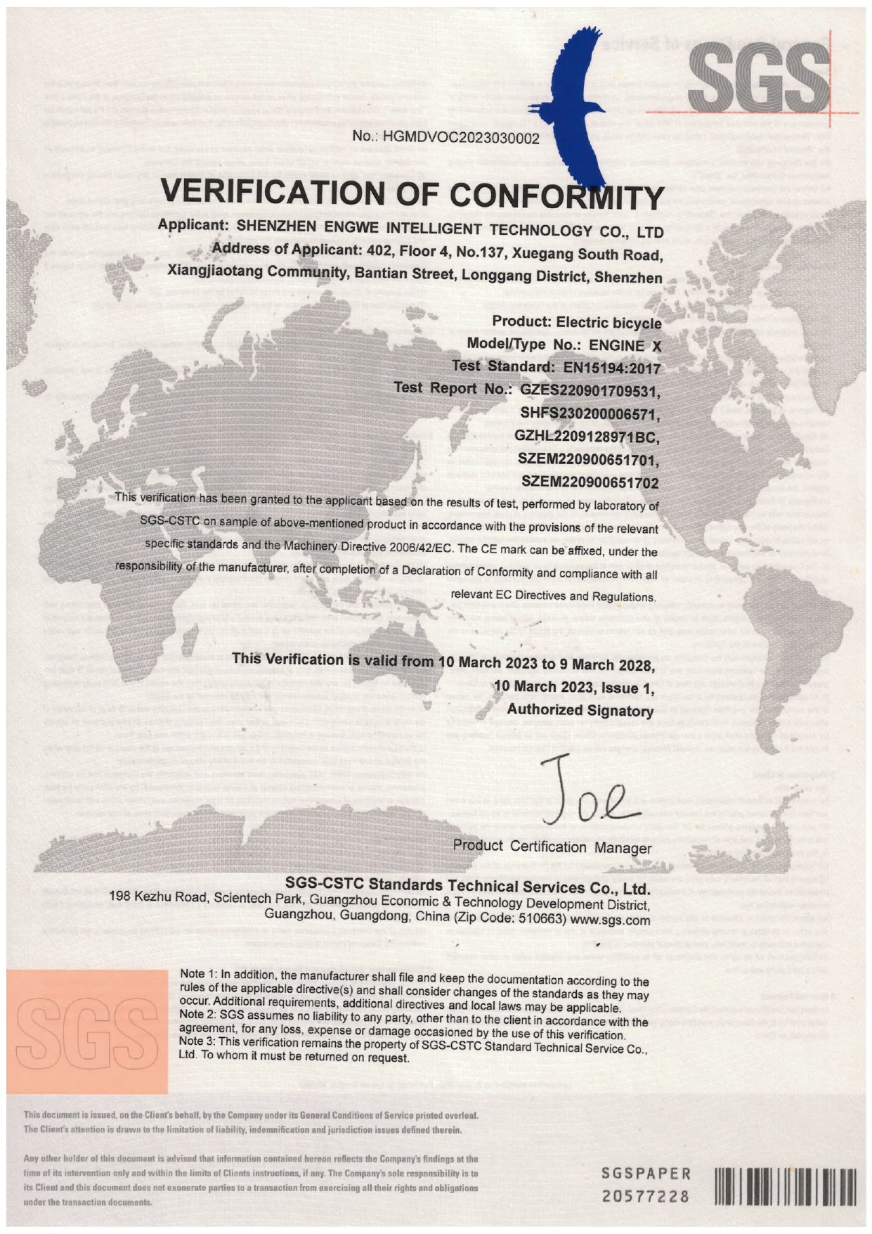 • 1 x Engwe X e–bike (included Ipc 13Ah battery)
